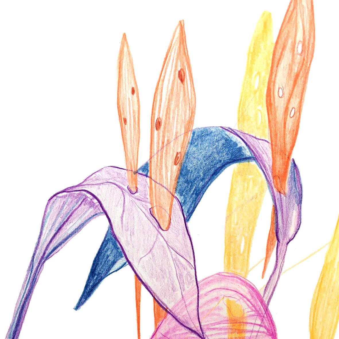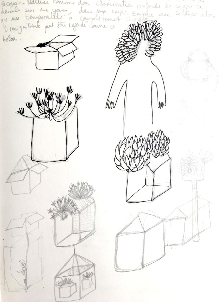 Spring 2020. My starting point was my daily delight I found to start growing vegetable just behind my house, first time ever. I’m still enjoying all colors and shapes of my allotment so far, where I spent half of my days after the national lockdown. I am taking the time to grow vegetables within an appropriate space. I do love put part of it in my house, such dried parts to pick up latter seeds and leafs. My house become a refuge for these treasures. New roof on top of our heads, new hanging bouquets on the windows, new indoor landscapes. Nature is everywhere, indoor, outdoor, in my mind, my body. I use to observe what’s remain of my vegetables, dried sculptures with fade colors. Fragility. New place of discovery and delight.