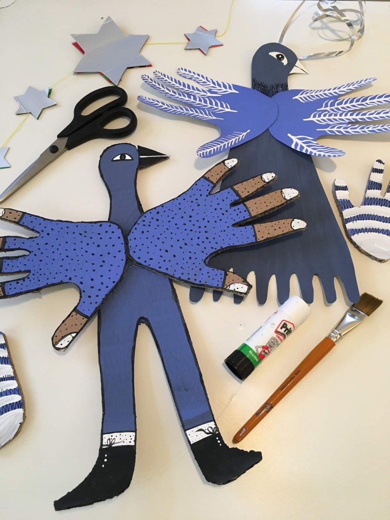 I dedicated my participation to the sky and built birds with hands as templates for the wings. The symbol of birds are very powerful and was such important for me during this third lockdown. I was very delight to share this main idea with the community and see so personnal birds on windows on my surrondings envirronement and some back for our collective window as well.