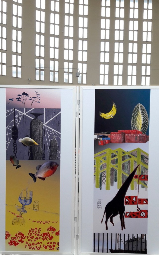 For this exhibition and for this special and committed place, I choose to show the “Plastic world” acrylic set, realised this year in my studio in Eastville Project Space, very close to the HUB. These paintings, like often in my works, decrypts matter of ecology, pollution and environment. Bottles city, plastic body, underground views and net in the sea putting in spotlights my areas of concern.