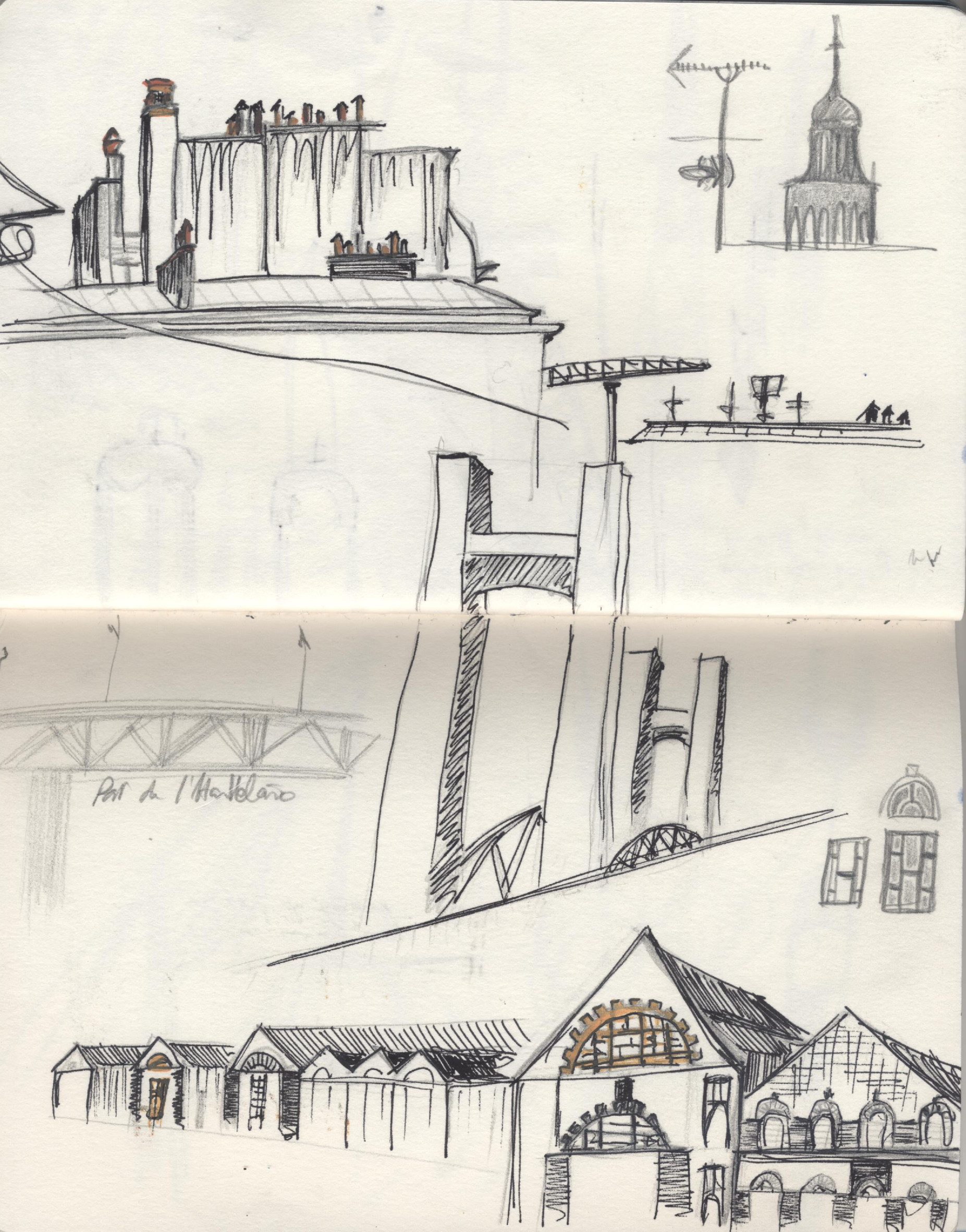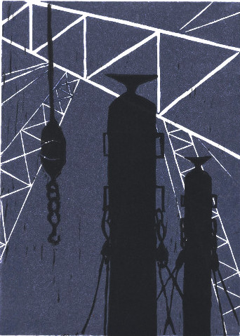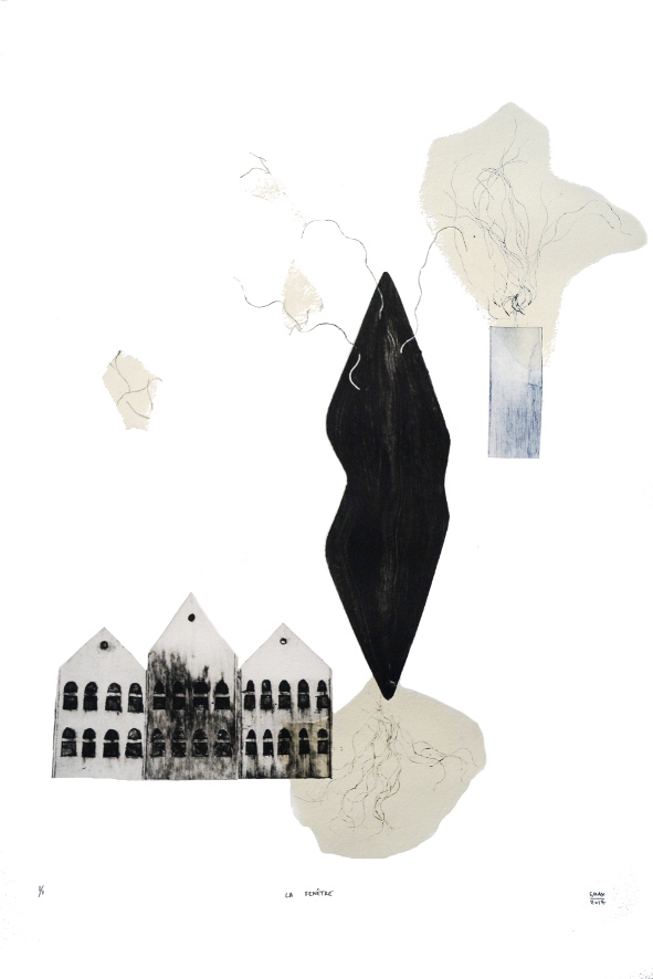 Sketches, linocut, monotype… I was inspired by Brest, the« town at the end of the world » we used to say, at the end of Brittany, France. I lived there for 10 years in total. The big Skies, the architecture, the harbour, and the newly renovated « Les Capucins » inspired me so much. I started to design big prints in regards of this magnificent, huge and historic place.